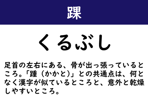 足首の左右にある、骨が出っ張っているところ。「踵(かかと)」との共通点は、何となく漢字が似ているところと、意外と乾燥しやすいところ。