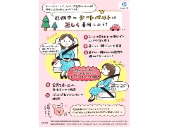 妊娠でお腹が大きくなるほどハンドルやダッシュボードにお腹をぶつけやすくなるので、シートベルトの着用の方法が誤っていると危険が増す可能性も。着席およびシートベルト着用のポイントをイラストと言葉で説明した資料は、学校、企業、公共機関、町内会などで自由に配布・利用できるとしています(印刷用資料ダウンロードリンク)。