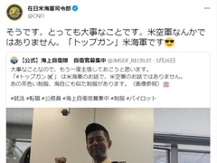 本職の人たちにとっては大事なポイント。この勘違いは見逃せません。海上自衛隊の公式Twitter(@JMSDF_RECRUIT)では、「トップガンは米海軍のお話で、米空軍のお話ではありません」とツイートして、勘違いをしないように注意喚起。すると、今度は在日米海軍司令部(@CNFJ)が、投稿を引用しつつ「米空軍なんかではありません。『トップガン』米海軍です」と呟きました。