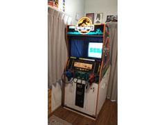 投稿主のミサキ(@misakiretriever)さんが妻にプレゼントしてもらったのは、セガが1997年にリリースした「ロスト・ワールド/ジュラシック・パーク」。同年公開の映画をゲーム化したガンシューティングです。ライド型のSDX筐体でなく、立って遊ぶSD筐体とはいえ、サイズは冷蔵庫ほどある大物。購入に踏み切った覚悟と胆力に頭が下がります。