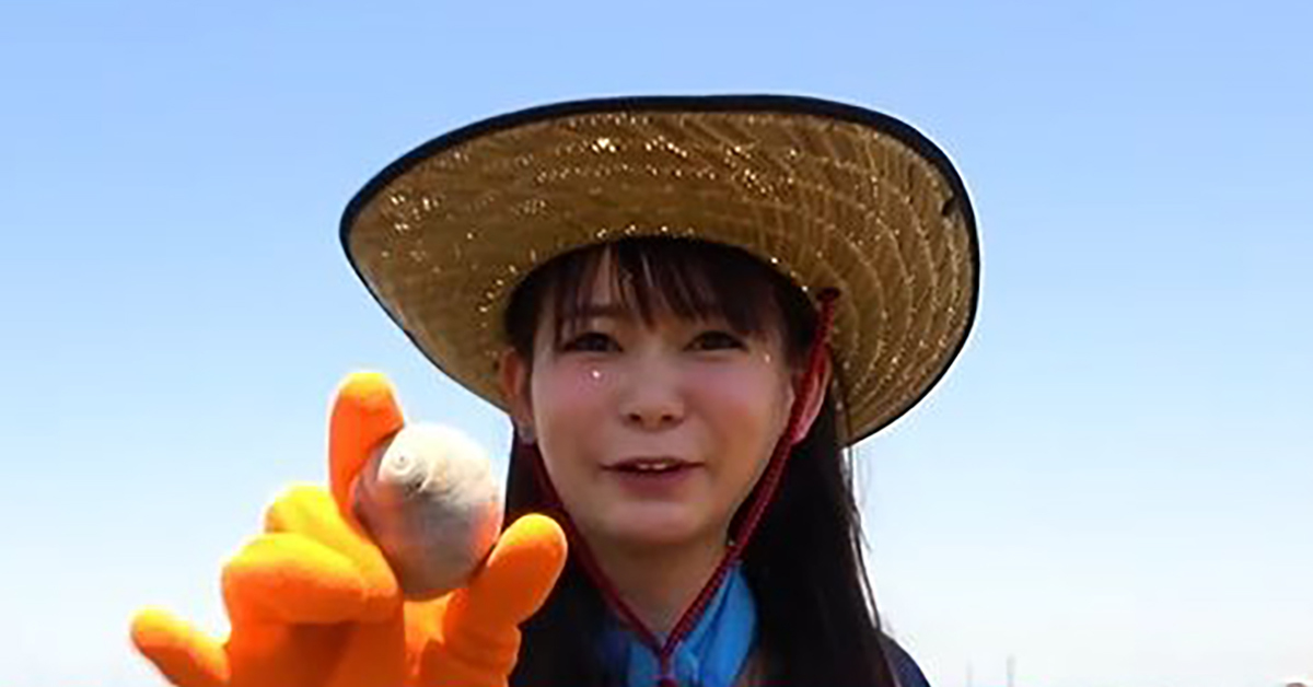 “萌え貝”のツメタガイを発見した中川さん(画像はYouTubeから)