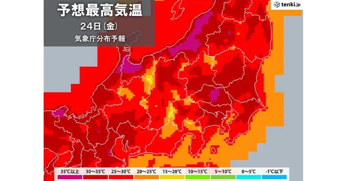 関東は24日(金)は厳しい暑さでしょう。25日(土)と26日(日)も強い日差しが照り付け、内陸部を中心に最高気温が35℃以上となり、猛暑日に。熱中症対策を万全になさってください。