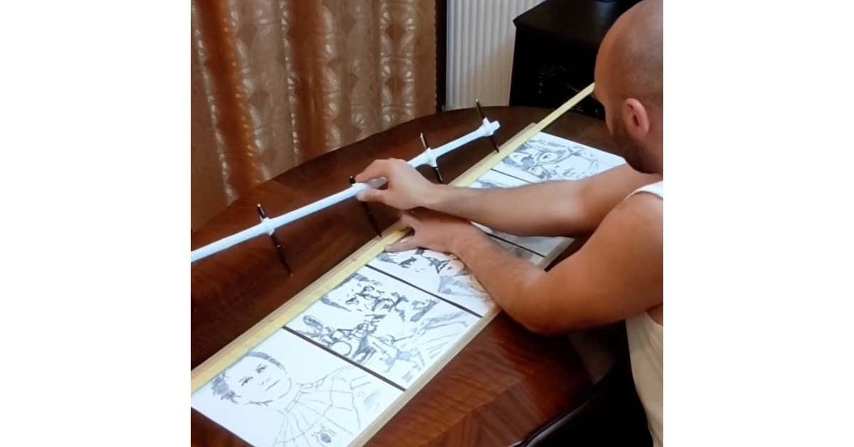 動画では5つのペンを付けた棒を持ち、下から順番に同時に絵を描いていきます。完成したのは「スパイダーマン」「アイアンマン」「ドクター・ストレンジ」「ソー」「キャプテン・アメリカ」の姿。同時に書けるだけですごいのに、どれも完成度まで高い……!
