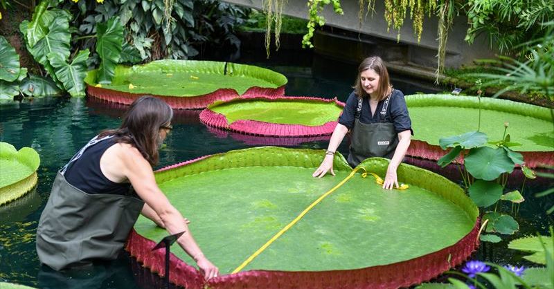 巨大スイレンの新種、英国の植物園が発見 直径3メートルで世界最大