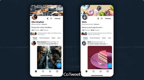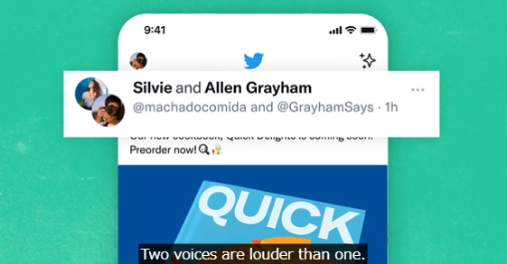 テストは米国、カナダ、韓国の一部のアカウントを対象に期間限定で実施。2人のユーザーが同じツイートを自分のタイムラインに同時に投稿できる機能で、該当するツイートのヘッダには2人のプロフィール画像とユーザー名が表示されます。