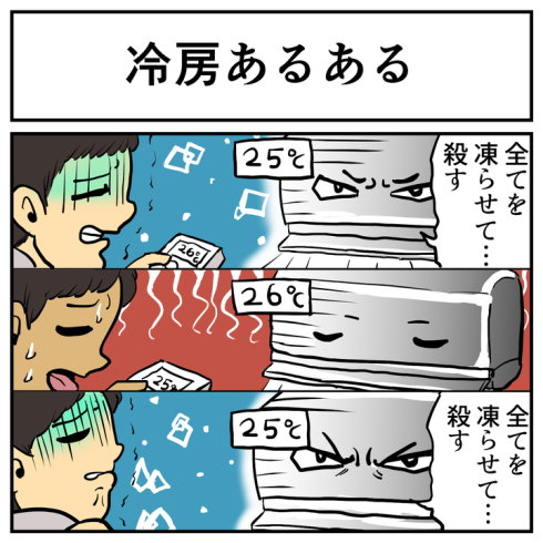 心から納得してしまうツイートを、イラストとともにご紹介する企画「共感しかない」。今回はIIZUNA(@i_zna)さんの感じた、クーラーの気温に関する意見です。
