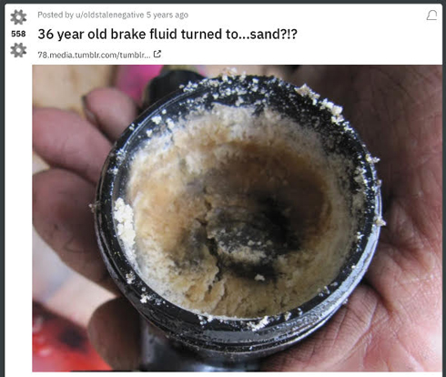 「36 year old brake fluid turned to…sand?!?」(reddit)より