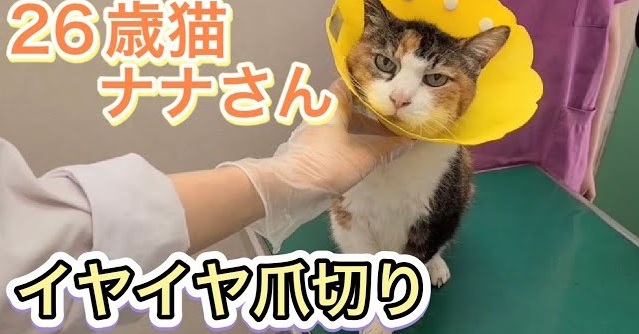 26歳のご長寿猫ちゃん、動物病院で爪切りに挑戦! ちょっと怖がりつつも頑張る姿に「元気と勇気を貰える」