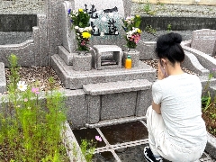 「お墓参りの供花を購入するため朝イチで並びました!」と開店前からホームセンターに行き、お供えの花を購入した藤さん。「母が亡くなってもう18年経ちましたが最後に息をひきとる瞬間までそばにいてあげることが出来ました」と、墓の前で手を合わせる写真をアップしながら振り返ります。
