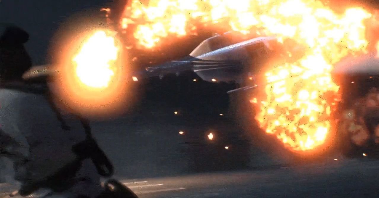 ツイートにはご丁寧に「バイオハザード RE:3」のワンシーンも動画で添付。再生してみると、ホバリング中のヘリが突然爆発し、猛回転しながら地面に落下する様子がはっきりと写っていました。墜落しとるやないか!!!
