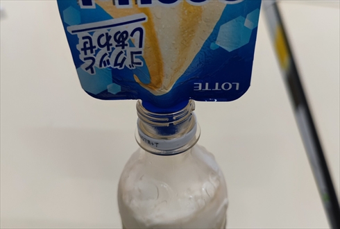 続く投稿で「ぴったりなので、こぼさずコーヒーフロートできる。そのための設計なのかは、知らないけど」と、クラフトボス ラテとクーリッシュ バニラ味の接続部をアップにした写真を投稿していました。