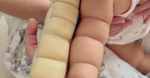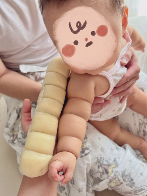 「食べたくなるかわいさ」「完全に一致」 生後8カ月の赤ちゃんの“ちぎりパンにしか見えない腕”がむっちむち