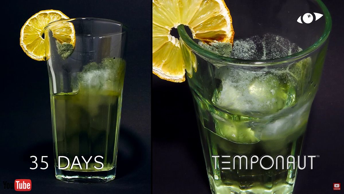 投稿したのは、さまざまな食べ物や飲み物を放置したタイムラプスを投稿しているYouTubeチャンネル「Temponaut Timelapse」。グラスの縁にレモンを挟み、ソーダを注いだところからスタート。その変化を観察していきます。