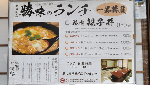 季節割烹 勝味のメニュー表(YouTubeより)