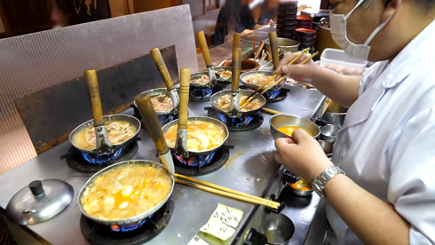 7つのコンロで親子丼を同時に料理!? “渋谷の人気割烹料理屋の厨房”を映した動画に「火の通りを一定にできるのすごい」「おいしそう」