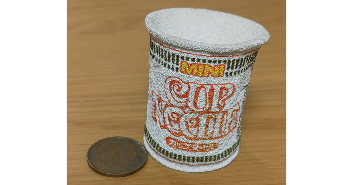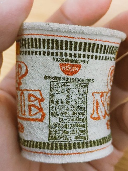 水圧実験により、まるでミニチュアのようになってしまった「カップヌードル」の容器が話題になっています。