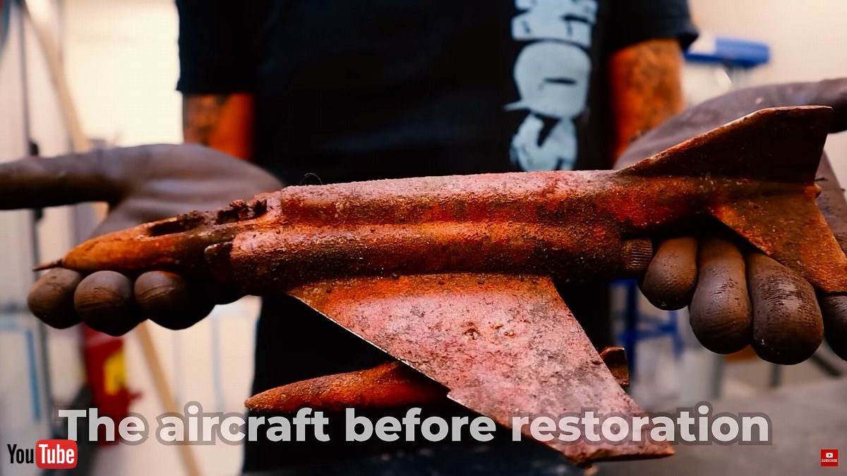 全身にさびの浮いた戦闘機の模型をキレイに清掃したレストア動画が、今にも飛び立ちそうな完成度です。