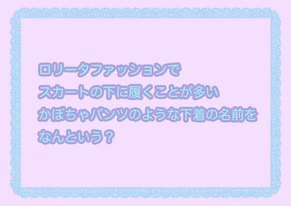 第2問:ロリータファッションでスカートの下に履くことが多い、かぼちゃパンツのような下着の名前をなんという?