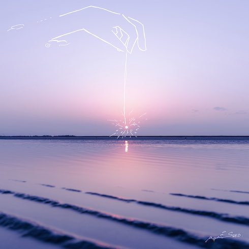 投稿者は、カップルで2人組アーティストとして活動するsara(@sara2626_if)さん。この作品は、彼氏が撮影した写真に彼女がイラストを描き加えたものとのこと。昇りくる太陽を線香花火に見立てたファンシーなイメージが、美しい朝焼けの風景と溶け合い幻想的な雰囲気を醸し出しています。
