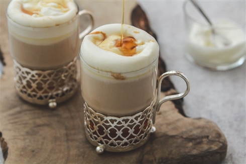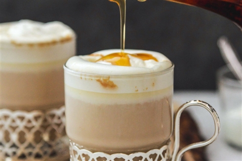 レシピによると、まずは水150mlを強火で沸騰させ、弱火にし茶葉6gを2分煮ます。牛乳300ml加え,ふつふつしてくるまで強火にかけたら火を止め蓋をし5分蒸します。その間に生クリーム(動物性35〜36%がおすすめ)100ml、砂糖大さじ1/2、メープルシロップ小さじ1を八分立てにし、ティーカップに注いだミルクティーにのせます。