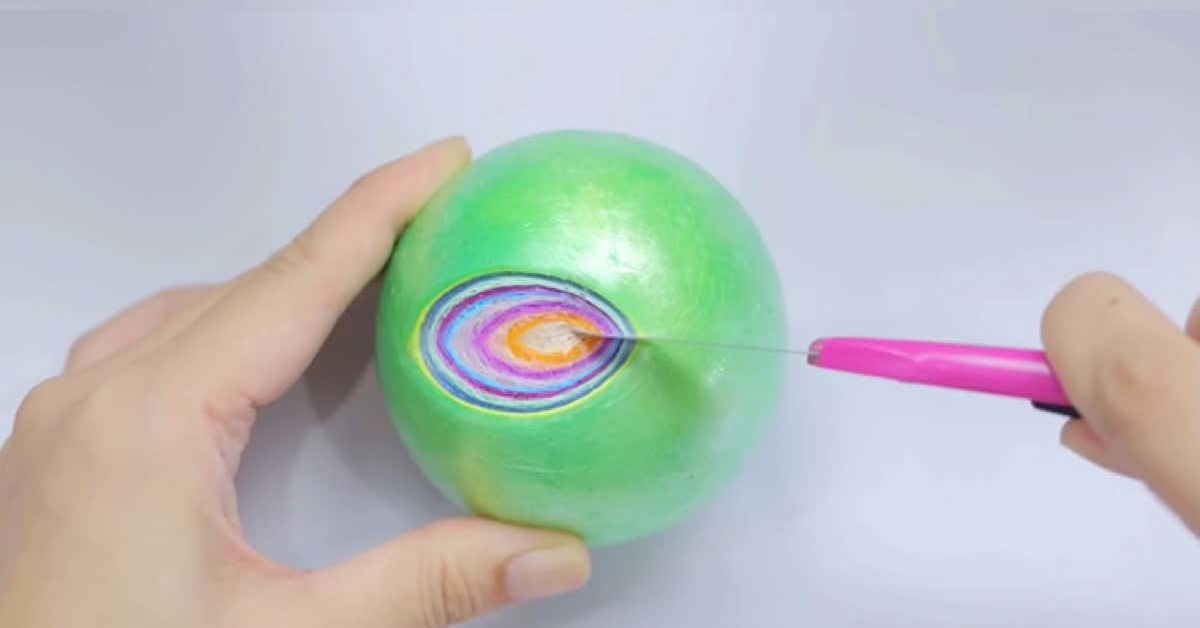 カッターでなぞるとカラフルな色が出現 テープボールを切る動画が見入るほど中毒性がすごい