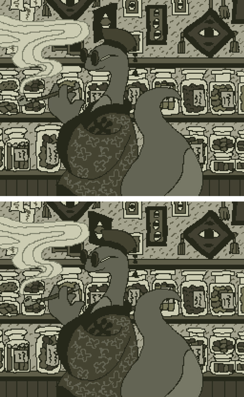 いくつものビンが並んだ何やらあやしい漢方屋さん……。そんな2枚のイラストに間違いが5つ隠されています。あなたは全て見つけられるかな?