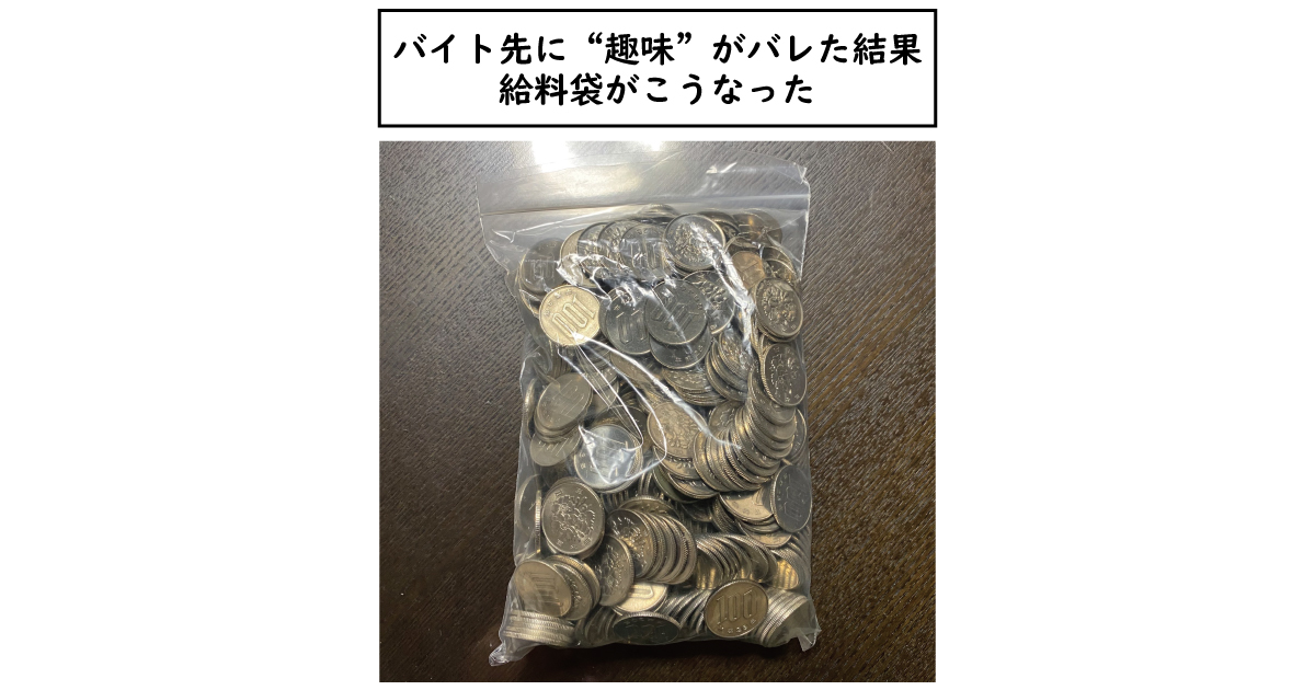趣味をアルバイト先の人に知られた結果、給料が大量の100円玉で支払われた人のツイートがネット上で話題を集めています。