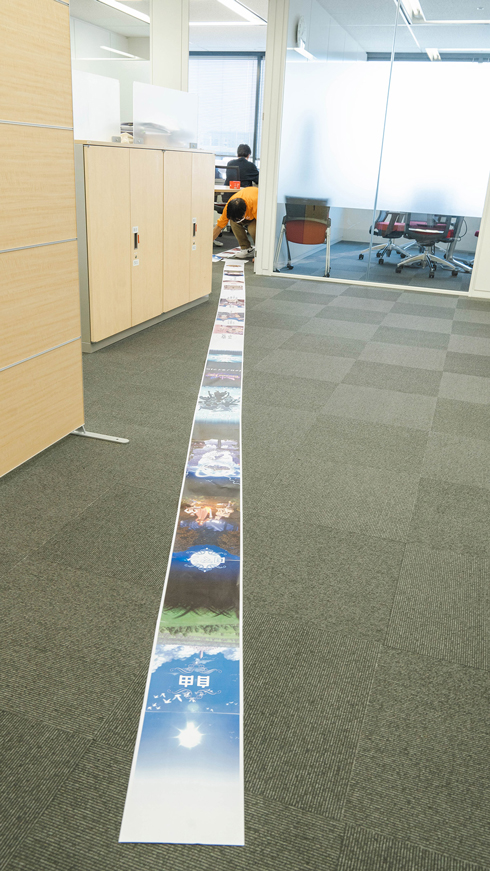 取りあえず連結して1つのマンガにした。長すぎて持ち運びに困ったので、巻物のように丸めた。ちなみにこの丸める作業に20分もかかった。紙が捻れたり、緩んだり、紙は長いと全然こちらの意図をくんでくれないのだ。