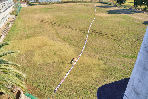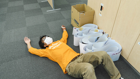 前回の作業から1週間後、われわれは広い場所にいた。中学校だった場所だ。広い場所はどこだろうと考えた結果、中学校って広かったよね、ということで中学校を借りたのだ。中学校ほどの広さがあれば、webtoonだろうとその長さの全貌を知ることができるはずだ。