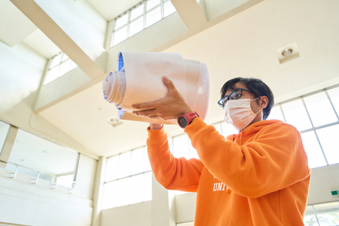 中学校では狭すぎた、というのが現状での結論だ。全貌を見ることができない。校舎内ではどこにもその長さがないのだ。体育館でも狭すぎた。風が吹いているけれど、グランドしかないようだ。