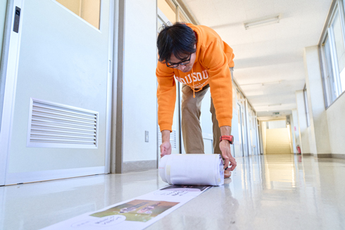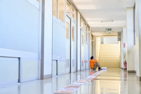 小学生のころ、廊下は長く感じた。実際に行ってみてもやっぱり長かった。ここならwebtoonを広げるというか、敷くというか、全貌が分かるはずだ。これをしたくて中学校に来たのだ。廊下なら風もないからうまくいくはずだ。