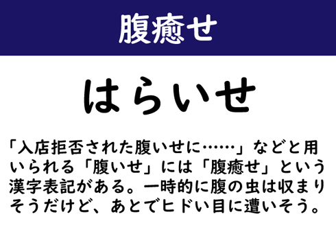 「入店拒否された腹いせに……」などと用いられる「腹いせ」には「腹癒せ」という漢字表記がある。一時的に腹の虫は収まりそうだけど、あとでヒドい目に遭いそう。