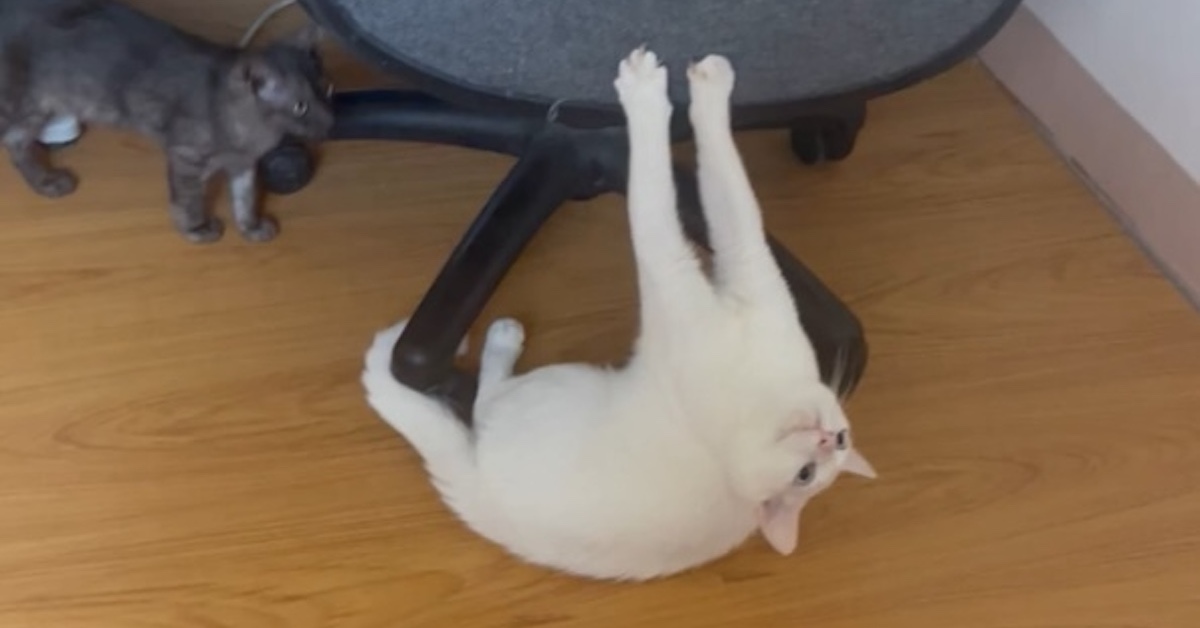 「Janggo the Cat Hanging From Computer Chair Needs Help || ViralHog」