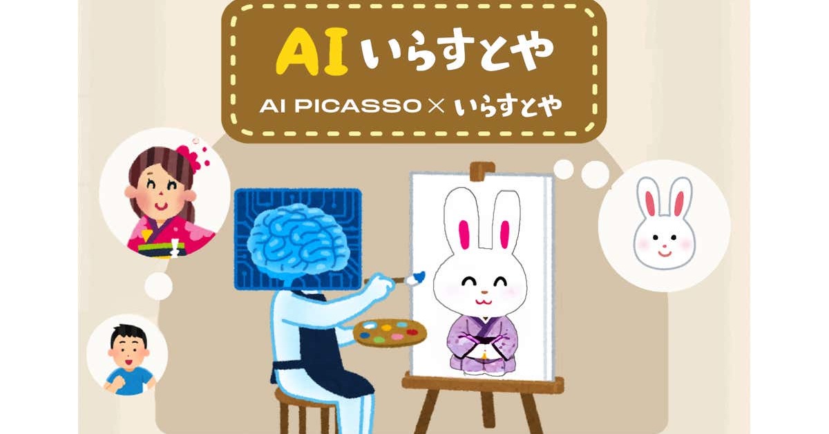 提供元のAI Picassoは、テキストや簡単な下絵から画像を生成できる「AIピカソ」の画像生成技術を活用し、いらすとやのキャラクターたちを学習した専用のAIモデルを開発。ユーザーはテキストを入力するだけで、誰でもほしいと思った状況のいらすとや風の画像を生成できます。