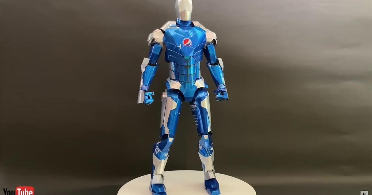ペプシ缶で作った「ペプシマン」(画像はYouTubeより)