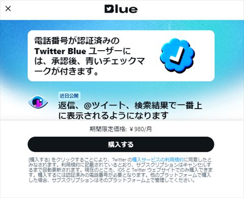 Twitterの月額制サービス「Twitter Blue」が日本でスタートしました。Webでは月額980円、iOSアプリでは月額1380円で、青いチェックマークやツイートの取り消し機能などの特典があります。