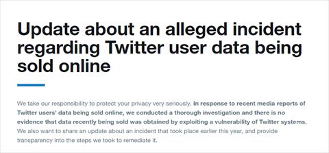 Twitterは報道を受けて調査した結果、当該のデータが「当社のシステムの脆弱性を悪用して得た情報という証拠はなかった」としています。既にオンラインに出回っているデータをさまざまな情報源から収集した可能性が高いと述べています。