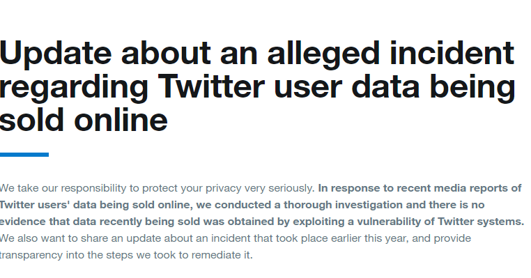 Twitterは、「2億人以上の情報が流出した」との報道を受けて、「当社システムへの侵害によるものという証拠は見つからなかった」とコメントを発表しました。