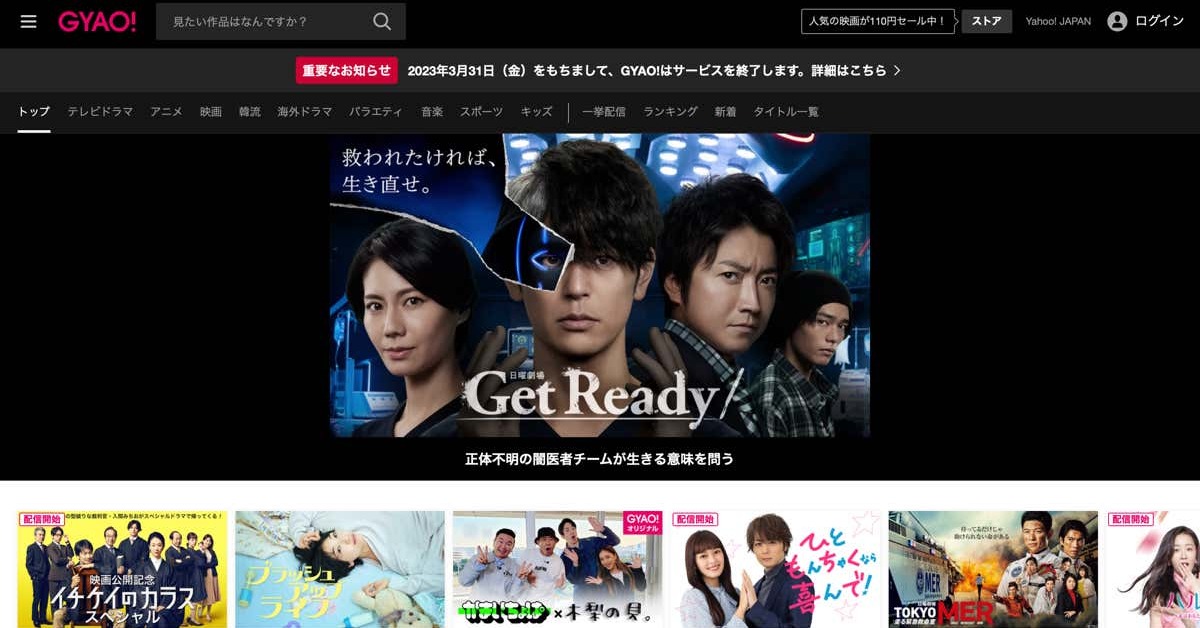 無料動画サービス「GYAO!(ギャオ)」が3月31日17時をもって、サービスを終了することが発表されました