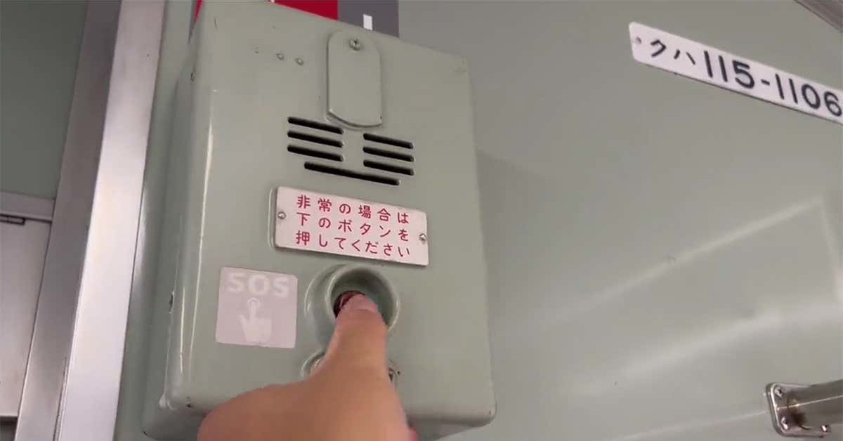 JR西日本の公式サイトで「社内非常ボタンについて」の項目を確認すると「車内で犯罪行為を目撃した時」「救急手配が必要な時」に加え「異常を乗務員に伝えたい時」などには、非常ボタンを押すよう書かれています。実際、115系の非常ボタンは運転台のブザーと連動しており、車掌に「ジー……」といった感じの低い音で異常を知らせてくれます。