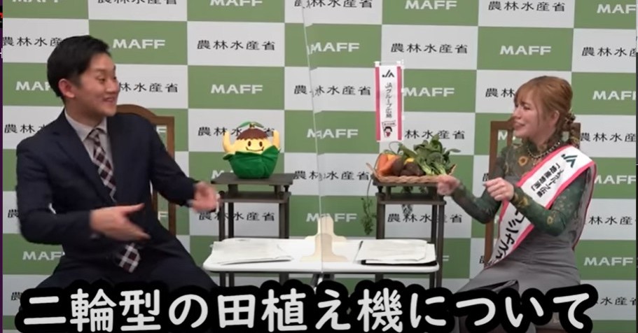 最新の動画では、同作のオープニング主題歌を担当し、JAグループ広島の「地産地消」デリシャス大使でもあるMachicoさんが農水省を訪問します。白石さんとプリキュアトークで盛り上がったり、Machicoさんの実家が農業をやっていることもありガチめの農業トークを繰り広げたりといろいろと濃い内容となっています。二輪型の田植機を語る声優さん、見たことない……!