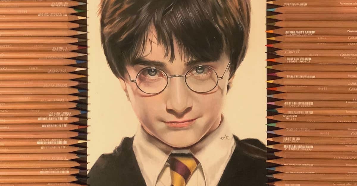色鉛筆で描かれたハリー・ポッターが、どこから見ても写真や油絵にしか見えません。描いた人の技能とセンスに100点満点をあげたい!