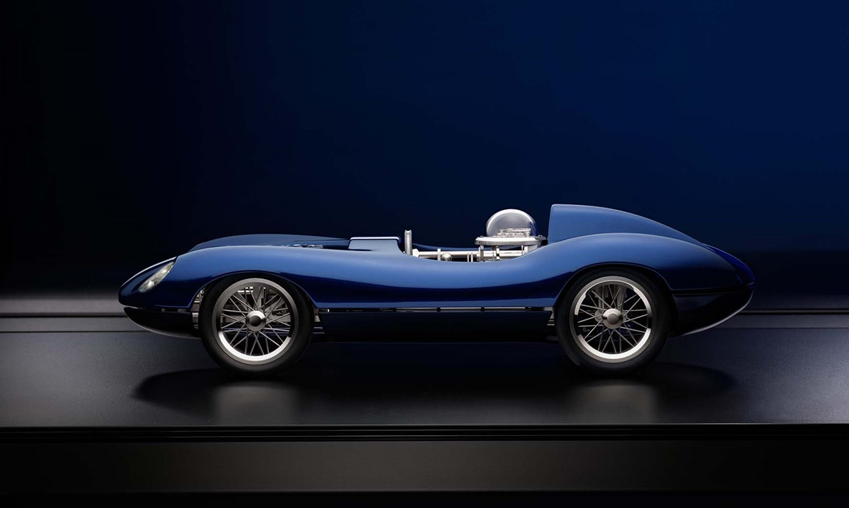 ボディーの素材には1960年代のレーシングカーと同じアルミを採用。はめ込まれているタイヤは、地面と接触で起きる変形までも再現して、臨場感ある造形に仕上げています。