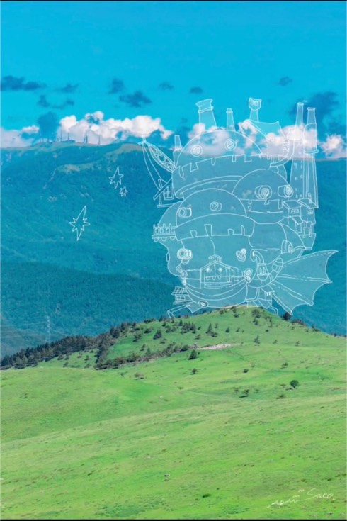 長野の雄大な景色に「ハウルの動く城」を手描き 風景写真にひと手間加える「技アリ」TikTok動画が話題に
