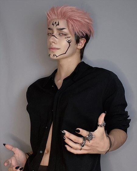 見事なコスプレを披露したのはNuumy(@nuumy_)さん。主人公・虎杖悠仁を乗っ取った宿儺の姿を再現しています。顔に浮かんだ紋様も髪型も威圧感あふれるまなざしもバッチリ。圧倒される雰囲気があり、宿儺の強さや恐ろしさまでも伝わってくるようです。