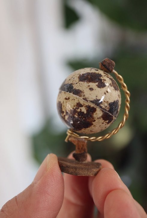 ウズラの卵の殻をミニチュアサイズの地球儀に! アンティーク調の味わいに「めちゃくちゃ素敵」「見知らぬ星の地図のよう」と称賛