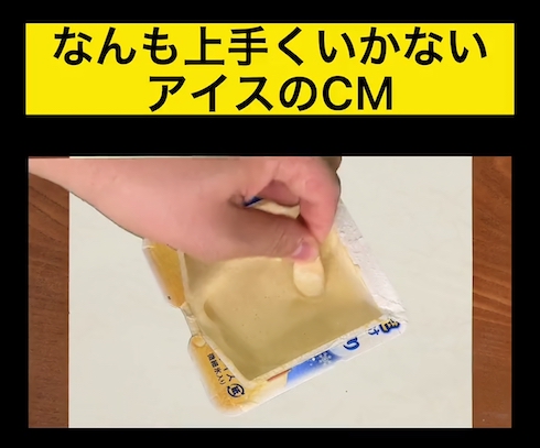 アイスを宣伝しようとするものの、最初から最後まで全てがうまくいかない架空のCM動画がTikTokで反響を呼んでいます。