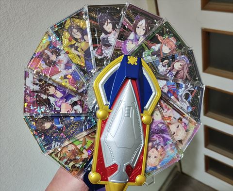 仮面ライダーの武器と「ウマ娘」のカードを組み合わせてみた投稿が、意外とジャストフィットで人気です。高速で動く能力を発動できそう。