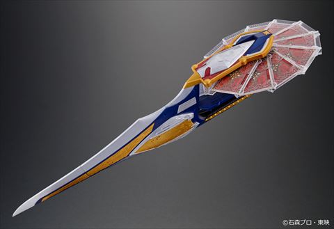 ブレイラウザーは剣型の武器で、敵である不死生物「アンデッド」を封印した「ラウズカード」をセットできるトレイが柄の部分についています。スイレンさんがラウズカードの代わりにセットしたのは、スペシャルウィークやサイレンスズカなどのカード。思いのほかしっくりくるビジュアルになっていて、カードがキラキラしているので強そうです。