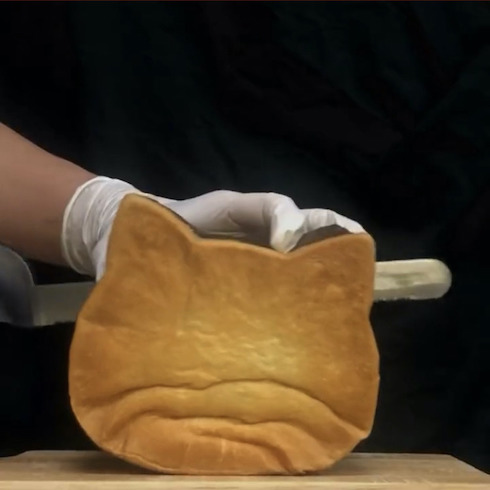 投稿者は、断面に絵のあるクッキーやパンの動画を投稿している「だんめん屋(@izumickey0719)」さん。猫の頭の形をしたパンをスライスすると、その断面にはハチワレの顔が! さらにパンを切っていくと、次々にふわふわでおいしそうなハチワレのパンの一切れが量産されていきます。金太郎飴ならぬ“金太郎パン”と呼びたくなるような、かわいくてユーモラスな一品です。